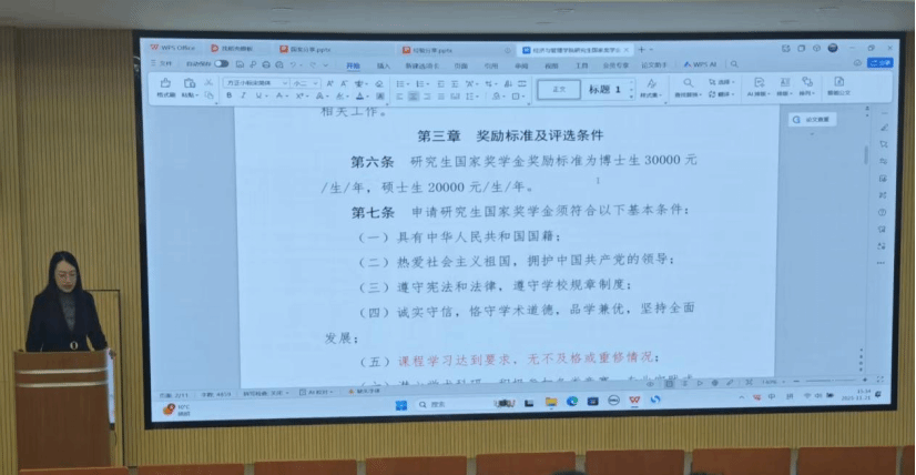 在奖学金申报方面,硕士研究生刘萃凡全面梳理了奖学金评审体系,详细解读国家奖学金与学业奖学金的申请条件与材料准备要点,强调扎实的学业成绩是成功申报的基础。孙雨彤则聚焦学术发表环节,针对期刊选择、流程跟踪及突发状况处理等问题,提供了系统的风险防范方案。二位分享者从不同维度为同学们构建了清晰的学业发展规划与申报策略。