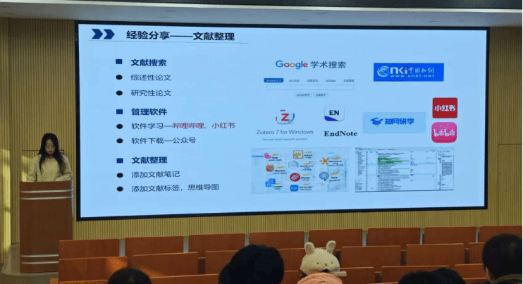 在学术研究方面,博士研究生郭彦豫系统阐述了竞赛与学术研究的转化路径,指出可从竞赛实践中的问题导向、数据积累和模型探索中提炼学术价值,实现“以赛促研”的良性循环。博士研究生谭诗钲聚焦科研写作实务,通过真实案例解析文献精读、审稿意见回应与投稿策略,特别分享了以建设性心态对待拒稿经历的心得。23级硕士张星亚和朗泽涛则从科研基础能力入手,完整梳理了从选题立意到论文成稿的全流程,演示了如何通过系统化分类、关键词标注等方法构建个人文献库,并针对各环节常见问题提供了具体解决方案。