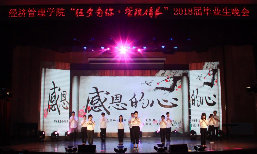 四载时光飞逝过,一朝欢聚话真情。又是一年毕业时,又有一批学子将要离开校园,走向未来的美好。6月14日晚,经济管理学院“经夕有你,管院情长” 2018届毕业生晚会于我校明向校区学生活动中心隆重举行。校学生处处长郝根彦、校团委书记张勇、经济管理学院全体教师、毕业班辅导员和全体毕业生一同度过了一个美好、难忘的夜晚。