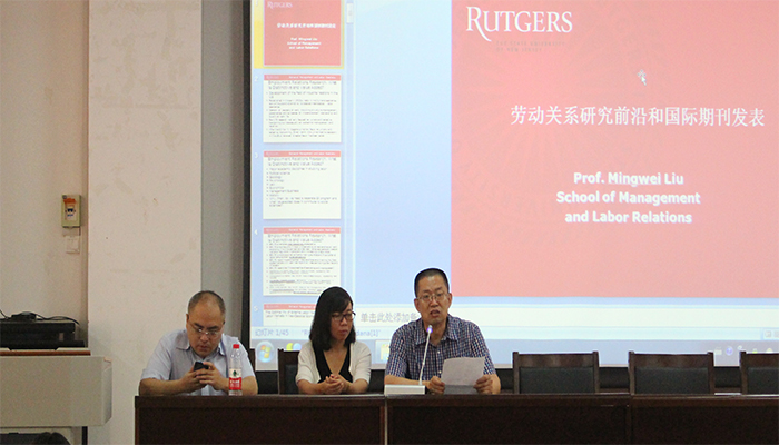 6月30日上午九点,经济管理学院特邀美国罗格斯大学刘明巍教授作了题为“劳动关系研究前沿和国际期刊发表”的学术讲座。校科学技术研究院副院长渠桂萍教授、经济管理学院副院长栗继祖教授出席讲座、开云官网教师和研究生近百人参加。讲座由栗继祖副院长主持。
