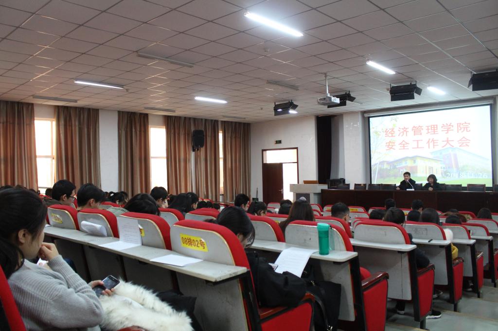 为了贯彻落实学校安全工作会议精神,11月26日中午,经济管理学院在明向校区经管楼二层报告厅召开安全工作大会。院党委书记李玮、副书记杨振东,全体辅导员、班主任,本科和研究生全体班长、团支书参加大会。会议由李玮主持。