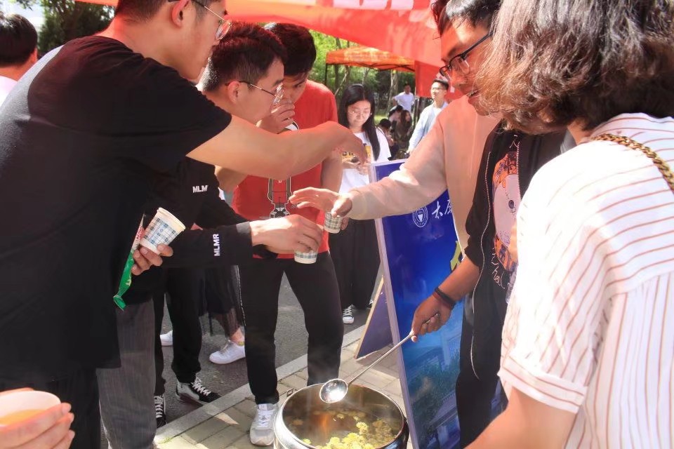 校运会期间,运动健儿们在炎炎烈日下,奋力拼搏、不断地突破自我;宣传组成员现场执笔撰文,共传稿件数百张,用通讯稿为健儿们鼓足拼搏的底气;志愿服务人员全程跟进,维护体育场的卫生,保证大本营整洁干净、秩序井然;更值得点赞的是,后勤保障人员准备充分,为裁判员、运动员送上了解暑的绿豆汤和菊花饮品。