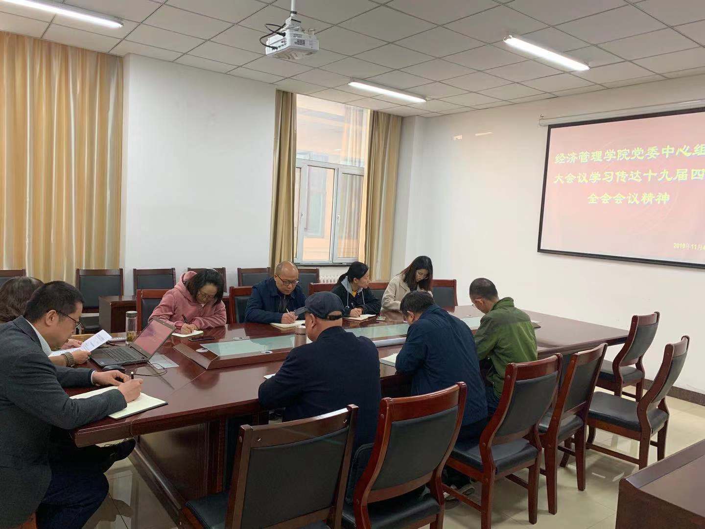 11月4日上午,经济管理学院召开党委中心组扩大会议,传达学习十九届四中全会精神,学院全体院领导、三办主任、团委书记,组织员罗社管、郭苗出席会议,会议由院党委书记李玮主持。