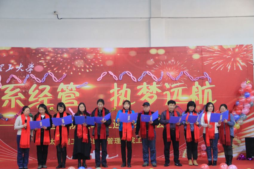 元旦前夕,经济管理学院在迎西校区教工餐厅举办“情系经管、执梦远航”为主题的教职工年度总结表彰暨迎新茶话会。副校长吕永康、学生处副处长李鹏、信计学院党委副书记梁泽莹、院党委组织员罗社管出席活动,学院全体教职工、离退休教师参加了本次活动。