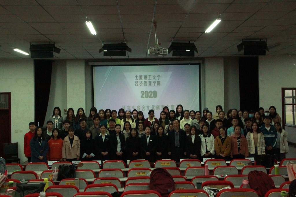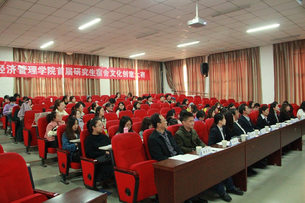 11月11日下午,经济管理学院研究生宿舍文化创意大赛在学院报告厅成功举行,大赛旨在展示宿舍文化,增进宿舍情谊,共同构建积极向上、文明卫生的宿舍氛围,增强宿舍、班级凝聚力。校后勤保障处副处长、公寓管理中心主任张文基、院党委书记李玮、副书记杨振东、明向校区公寓管理中心主任于利、院团委书记郝晓飞,宿舍楼长代表和经管学院研究生辅导员、全体研究生参加活动。