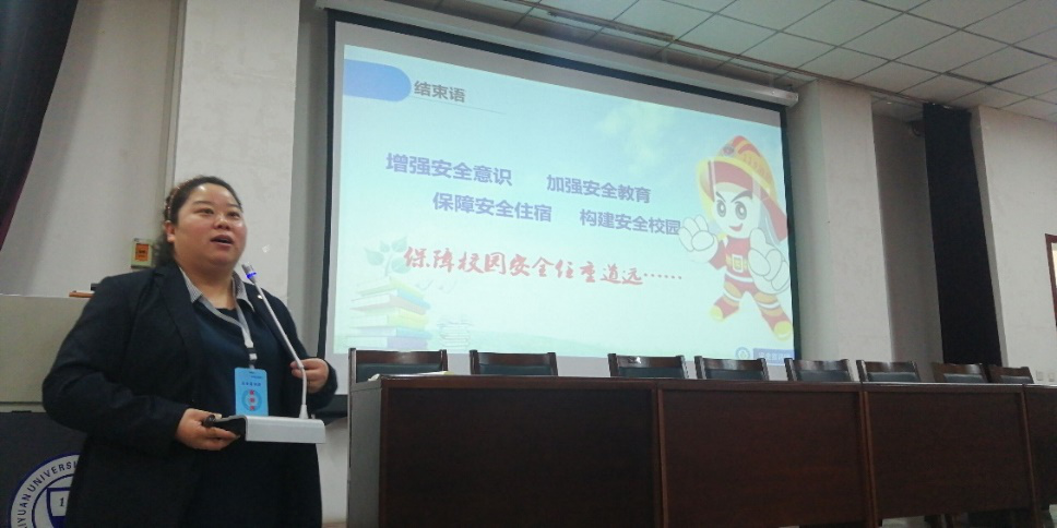主讲人关丽首先从消防安全角度出发向同学们列举了宿舍存在的火灾隐患,接着穿插消防安全相关视频,向同学们传授预防火灾的方法,分享灭火小妙招以及火灾逃生的经验,并邀请现场同学参与演示如何使用灭火器。