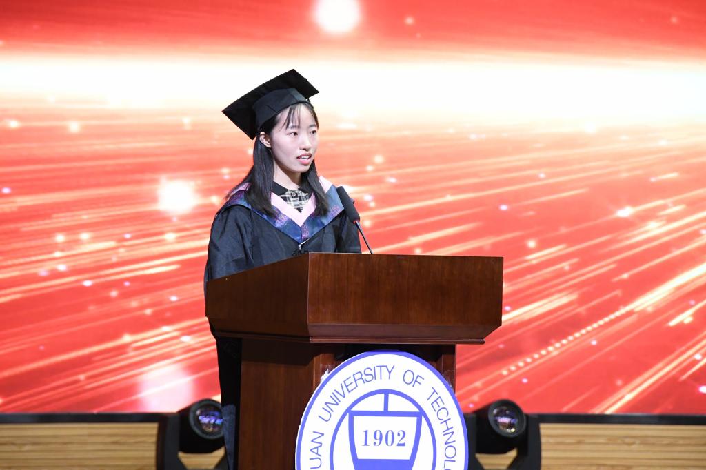 院长栗继祖教授在典礼上致辞,他向圆满完成学业的全体毕业生表示祝贺,对大家在校期间的成长和取得的成绩表示充分肯定,并真诚寄语全体毕业生,一要终身学习,坚守信念,积极适应环境,永远保持向上的热情;二要广交益友,博采众长,发扬团结与合作精神,开辟人生新的天地;三要脚踏实地,逐梦力行,为了自己的梦想奋力拼搏,书写无愧于时代的青春之歌。