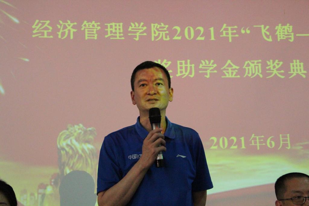 经济管理学院院长栗继祖代表学院对张星昱总经理一行来访表示热烈欢迎,并感谢企业设立奖助学金,资助优秀的学生,他高度赞扬了飞鹤乳业的企业精神和文化理念,对双方业已开展的合作表示肯定,希望双方未来的合作能够进一步深化拓展。他对获奖学生表示祝贺,并希望大家继续努力、奋发图强,在未来的人生征程中不断取得新的突破和辉煌,书写无愧于时代的青春华章。