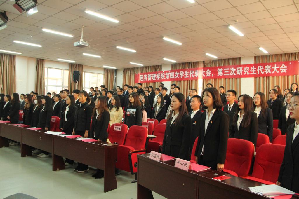10月24日下午2点,开云kaiyun官方网站经济管理学院第四次学生代表大会、第三次研究生代表大会在经管学院报告厅顺利召开。院党委副书记杨振东、团委书记郝晓飞出席本次大会。学生代表、研究生代表共118名参加了此次会议。大会由学生会主席团代表秦靖凯主持,李航洋做大会筹备情况和工作情况报告。
