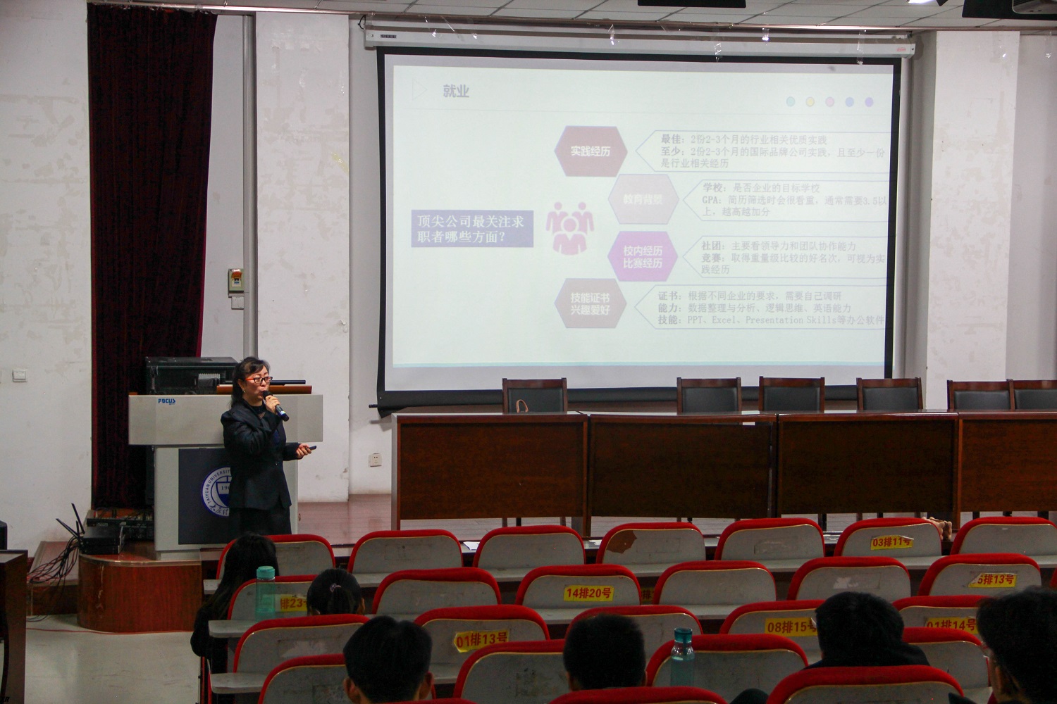 11月18日晚,经济管理学院与我校留学服务中心合作举行“把握趋势、预见未来”就业技能提升主题活动,活动内容涵盖就业方向指导、未来行业发展分析、出国留学事务介绍等。活动邀请毕业于斯坦福大学的程江波先生以及留学服务中心刘老师作为主讲嘉宾,与同学们进行现场交流。