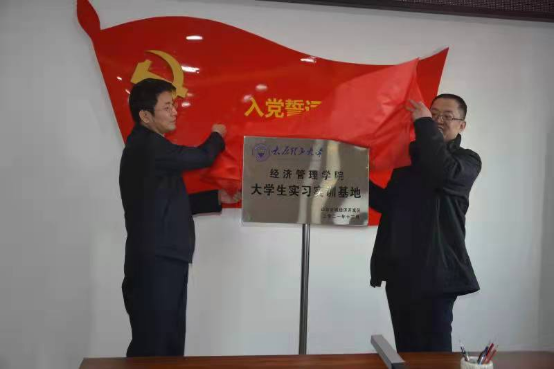 在热烈的掌声中,栗院长和李主任共同为经济管理学院大学生实习实训基地揭牌。
