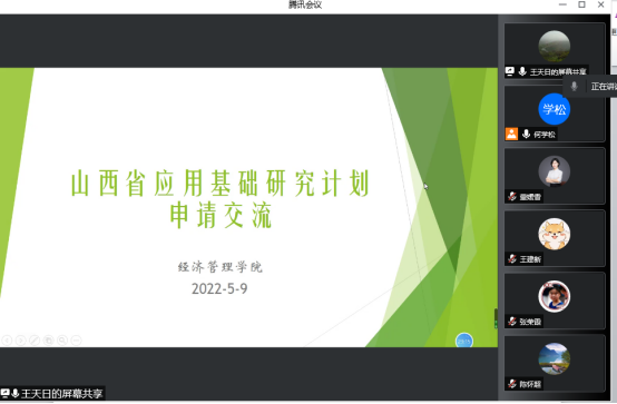 双甲子弦歌不辍,求实创新争一流。为切实贯彻落实“学术校庆”之精神,5月9日下午,学院成功召开山西省“基础研究计划(自由探索类)”项目申报经验交流会。王天日教授和王建新博士应邀分享了项目申报经验,董媛香副教授、王蕾副教授、李立功博士、刘娟博士、董泽瑞博士、张荣霞博士、何学松副教授等20余人参加了会议。