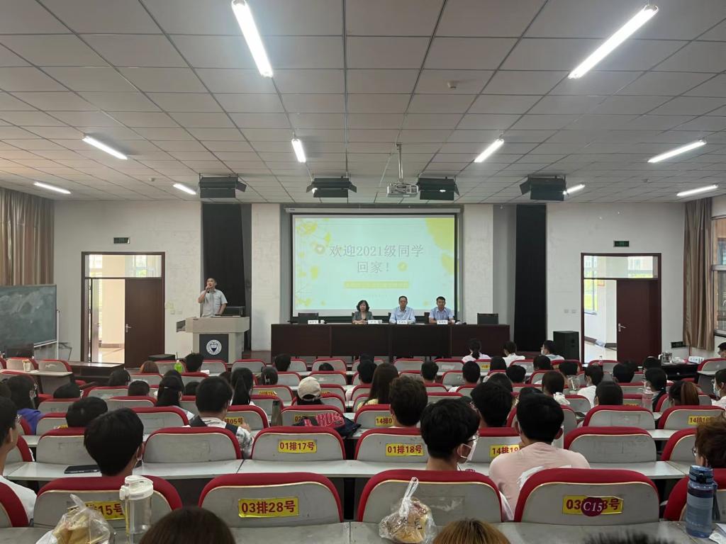 院长栗继祖代表学院对2021级本科生“回家”表示热烈欢迎,他对学院的机构设置、师资队伍、专业设置、学科建设、科学研究等基本情况作了详细介绍,总结了近年来学院取得的标志性成果,展望了“十四五”期间学院的建设规划和目标任务,帮助同学们了解学院的历史、现状和发展前景,鼓励同学们更有信心在学院高质量的师资水平和教研能力的帮助下得到全面发展,建立起师生互相成就的高质量可持续发展的人才培养生态,共同营造获得感、提升感、幸福感满满的经管“大家庭”。