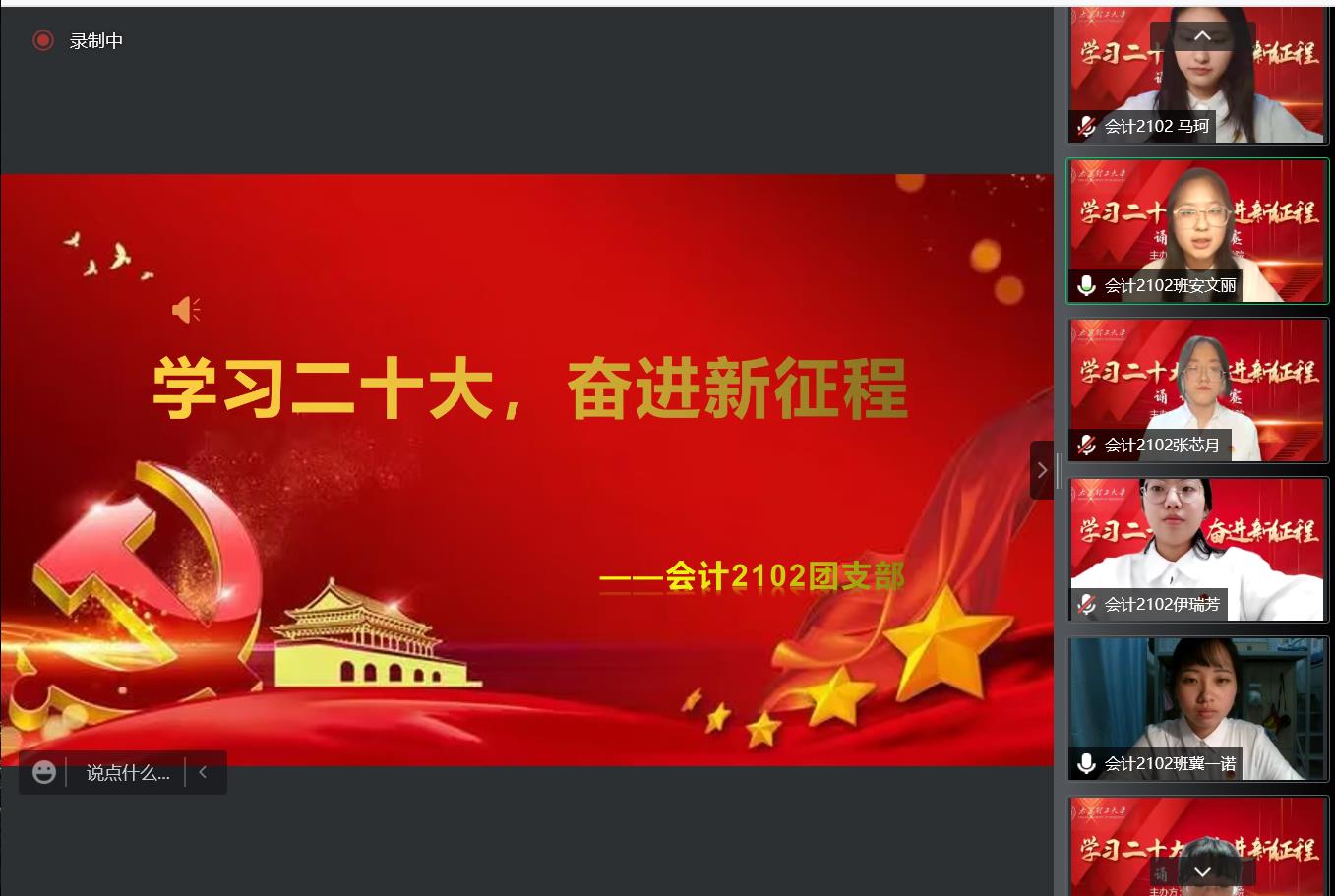 比赛虽然以线上的方式进行,但同学们积极向上的精神面貌、饱满热情的气势态度却从屏幕中浓烈洋溢而出,充分展示出经管学子对党和祖国的热爱、对新时代新征程不懈奋斗的信心和渴望,以时代新人的姿态,为祖国建设注入青春力量。