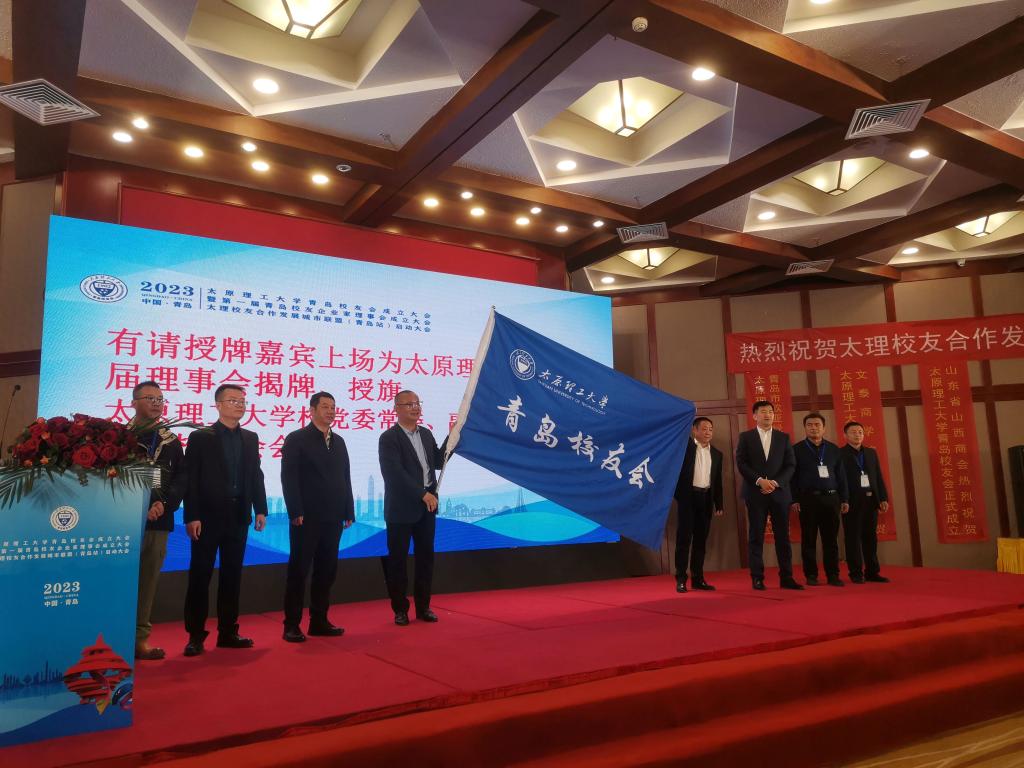 大会审议并表决通过了《开云kaiyun官方网站青岛校友会章程》,选举产生了第一届理事会组织机构成员,97级市营校友左文杰(左一)当选为青岛校友会会长。吴斗庆及山东校友会会长李贵波为新当选的理事会机构成员颁发了聘书,举行了揭牌、授旗仪式。