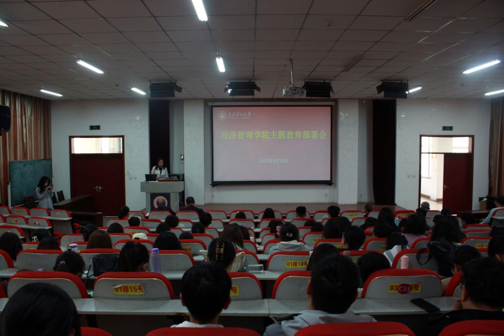 4月18日下午2点,经济管理学院在学院报告厅召开主题教育部署会,学院党政领导出席会议,全体教师、学生党员代表参加本次会议。