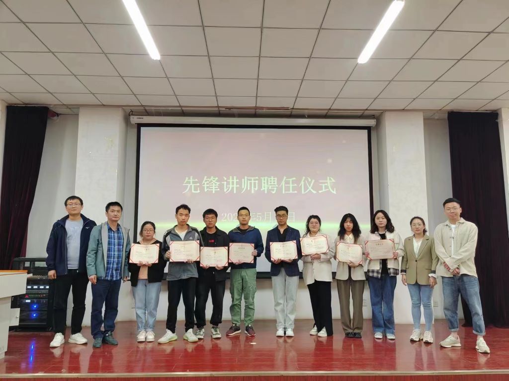 杨振东向同学们介绍了创立“先锋讲坛”的目的和意义,对近年来大学生考研和就业形势进行分析,结合学院毕业生的就业、考研情况,为同学们阐明当前就业和考研的大趋势,引导同学们树立正确的择业观,提前做好考研和就业的规划。在“先锋讲师”聘任仪式上,杨振东为“先锋讲师”颁发聘书,并合影留念。