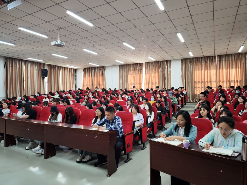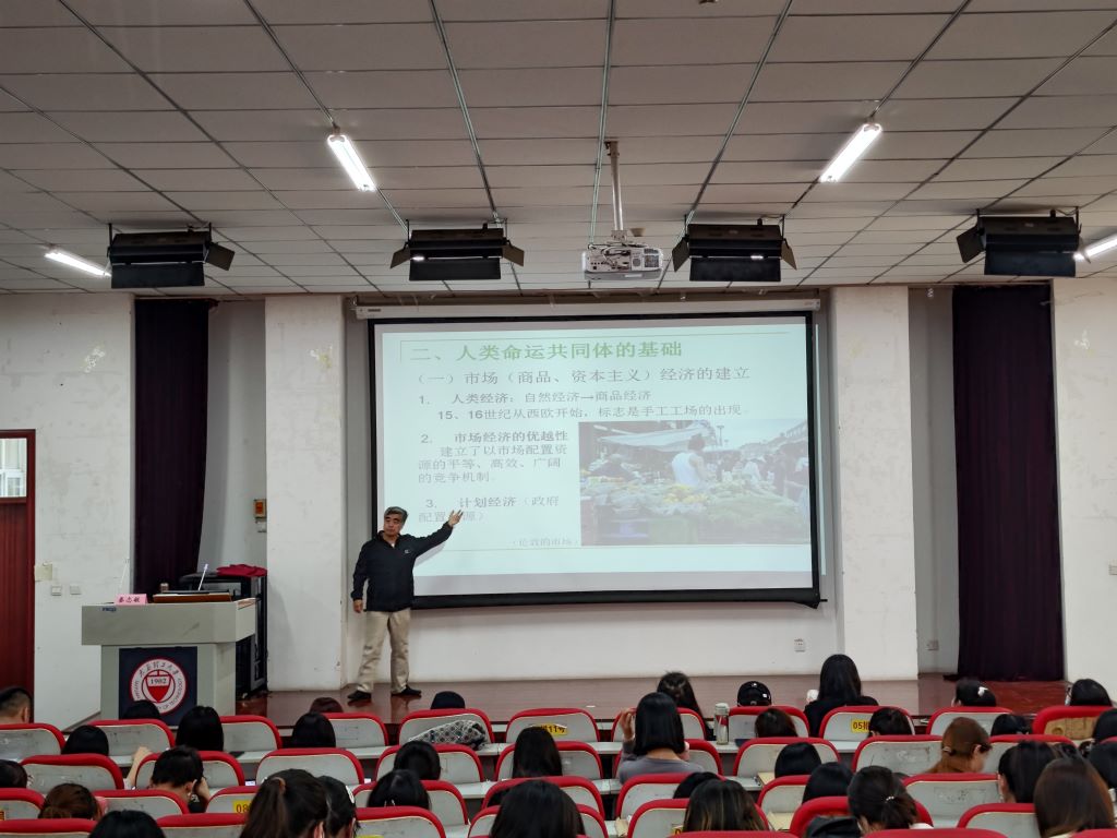 秦志敏教授号召同学们,要以“人类命运共同体”出发去认识世界,认识到党的战略的正确性,要用学习的态度和精神主动思考怎样在开放中实现中华民族伟大复兴,引领全体地球村民共同建设清洁美丽的世界。