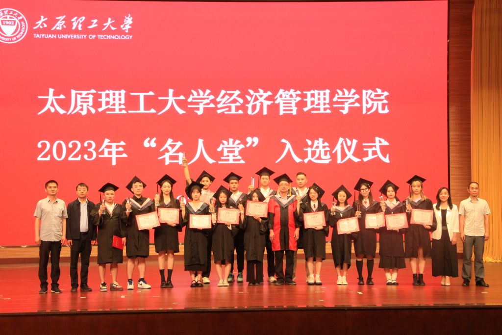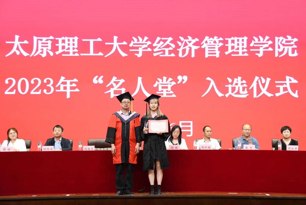 院党委副书记杨振东宣读了2023年“名人堂”入选决定并主持入选仪式。“名人堂”是经济管理学院毕业季的特色项目,自2020年起设立,选取在学业、竞赛、体育、公益等领域取得骄人成绩的杰出毕业生入选,并通过新媒体等形式广泛宣传。今年,共有包括退伍不褪色、学海显身手,升学清华大学全日制学术型硕士研究生的董思媛,学习电竞两不误、转专业的优秀生,在《FIFA足球世界》2021全国高校赛总决赛中勇夺季军创造我校历史的程润泽等15名同学入选“名人堂”。院长栗继祖为每一位入选者颁发入选奖杯和证书,并一一合影留念。
