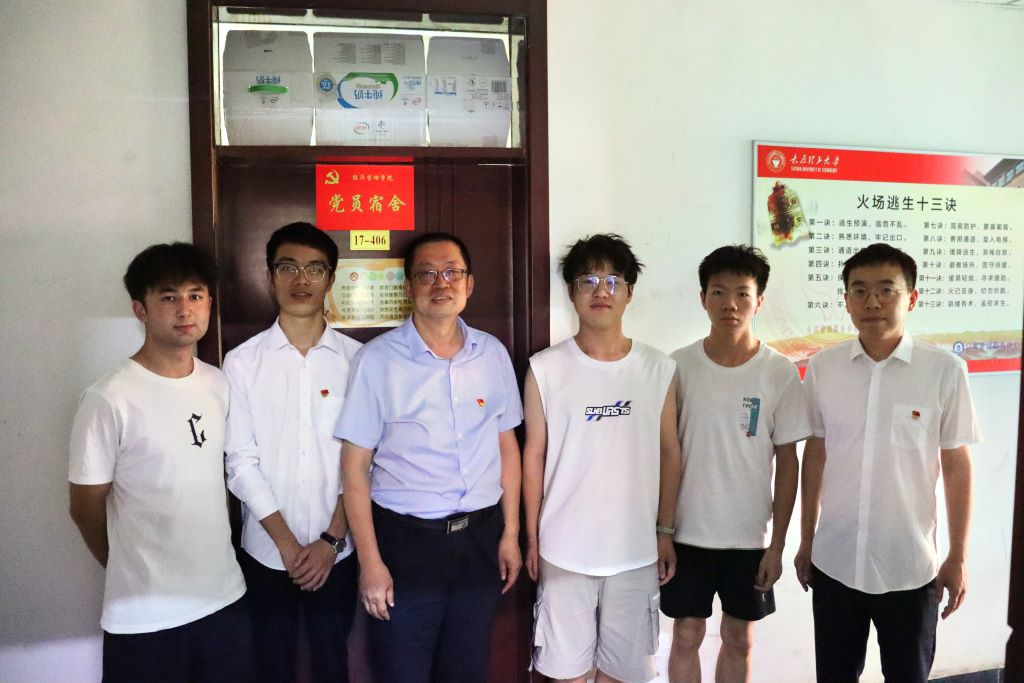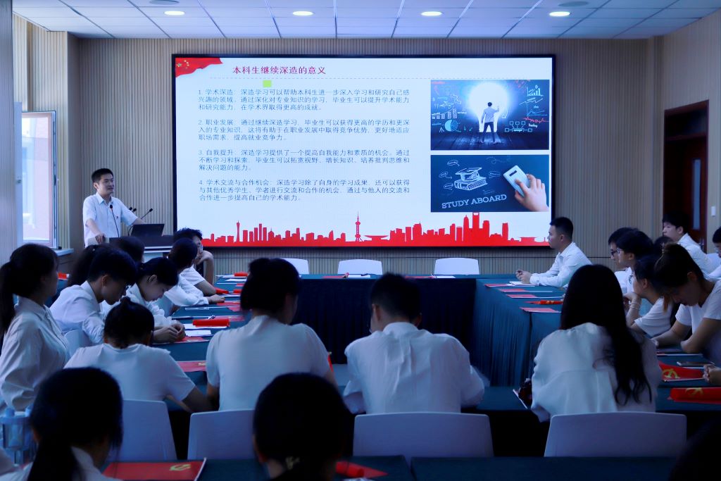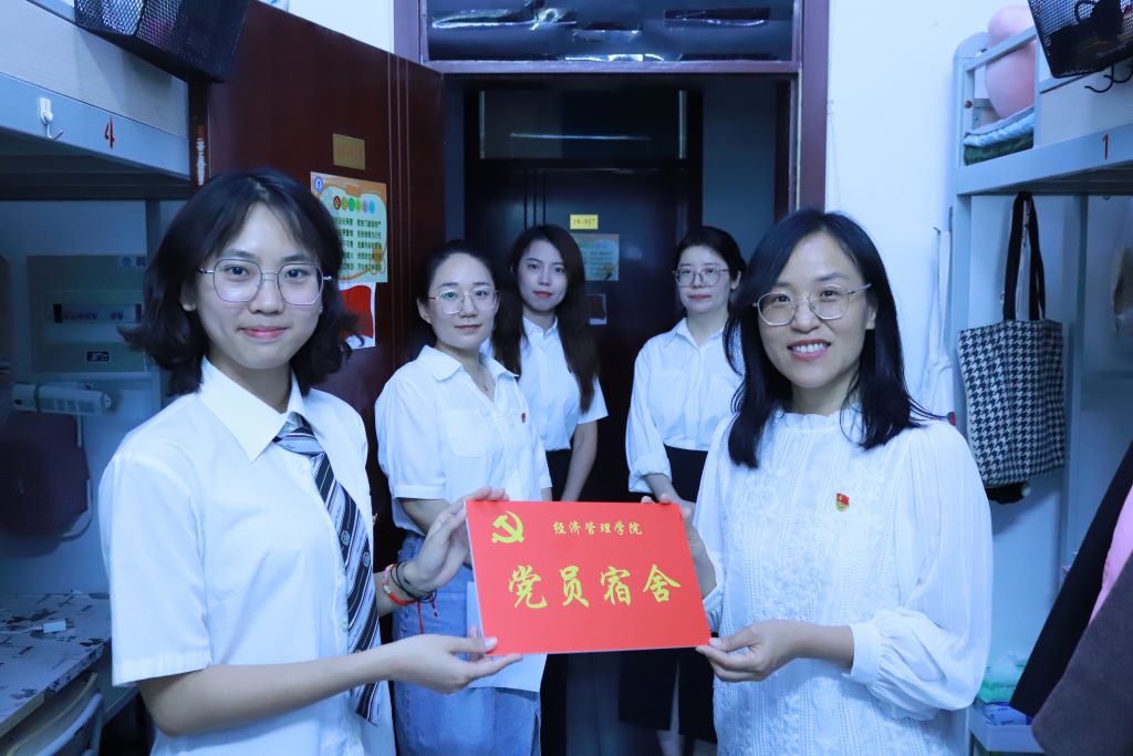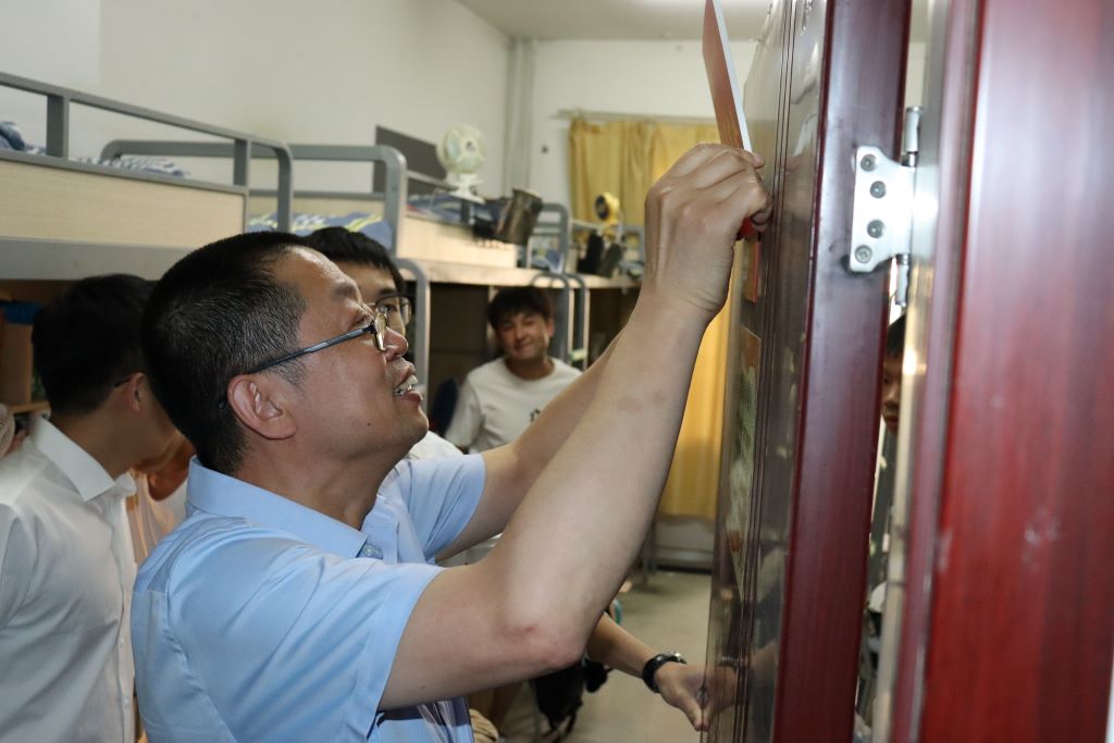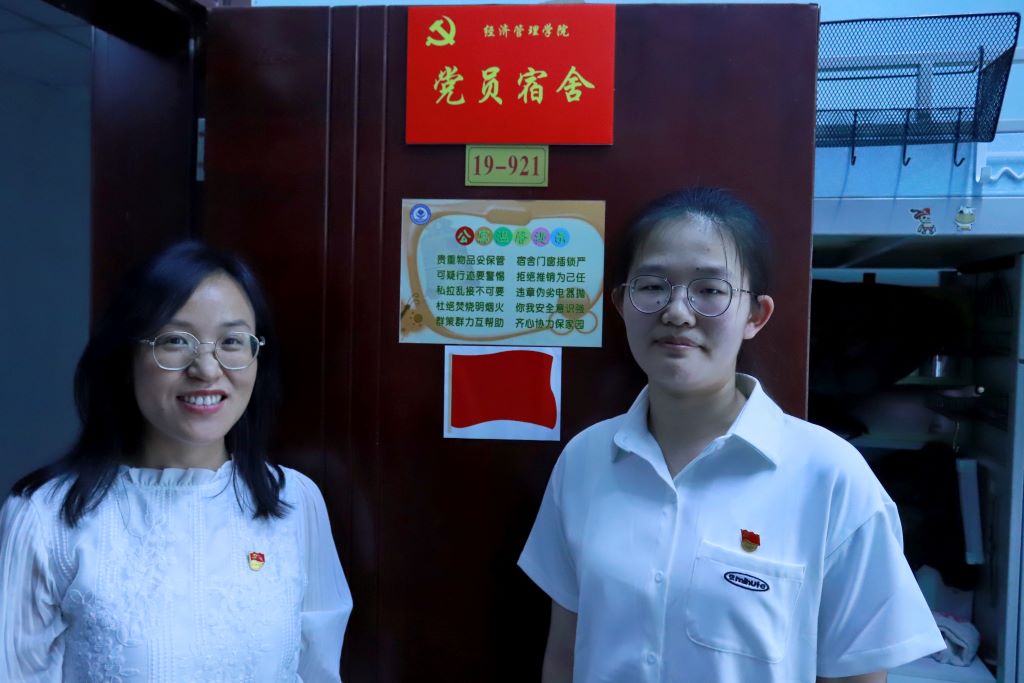 杨振东为所有预备党员讲授《坚定文化自信,投身建党伟业》主题教育题党课。与此同时,闫新和栗继祖分别前往男女生宿舍进行“党员宿舍”挂牌。