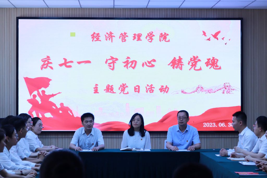 6月30日中午,经济管理学院“庆七一 守初心 铸党魂”主题党日活动于经管学院229会议室隆重举行。院党委书记闫新,院长栗继祖,院党委副书记杨振东,各学生支部书记以及全体预备党员共同参加了本次活动。