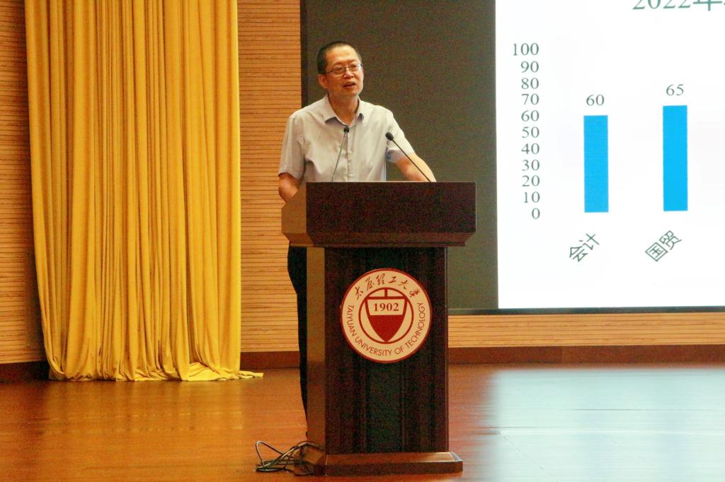 栗继祖代表学院对2023级研究生的到来表示欢迎,他向同学们介绍了学校的基本情况,并从人才建设、学科建设、师资队伍、科学研究、国际化建设等五个方面对经济管理学院做了介绍。希望同学们能积极发挥主观能动性,及早进入科研,及时与导师沟通,实现自己在研究生三年的高质量发展。