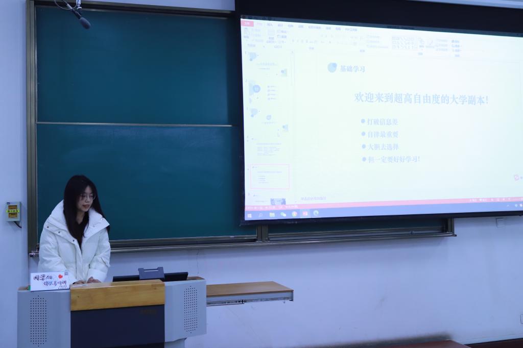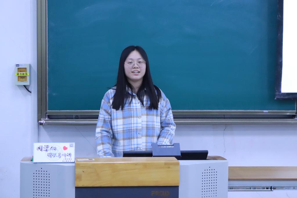 接下来王静、苏珂莹、杨媛、吴明泉四位已被推荐面试攻读硕士研究生的大四学生代表依次上台分享自己的成长经历、学习经验,对大一新生今后的发展有着一定的参考意义。
