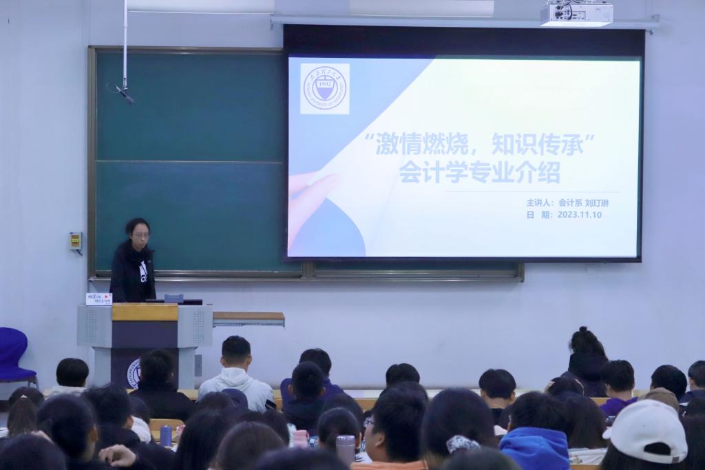 会计学专业由刘玎琳副教授担任主讲老师。刘老师通过对会计学本科生培养计划、就业现状进行分析,为学生指明专业学习方法及就业前景。勉励会计学专业学生要不断加强学习专业知识、不断思考,努力服务山西地方经济,着眼于成为会计行业领军人才。