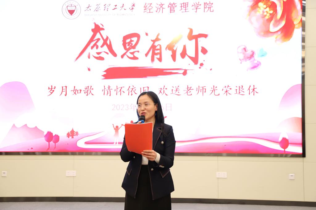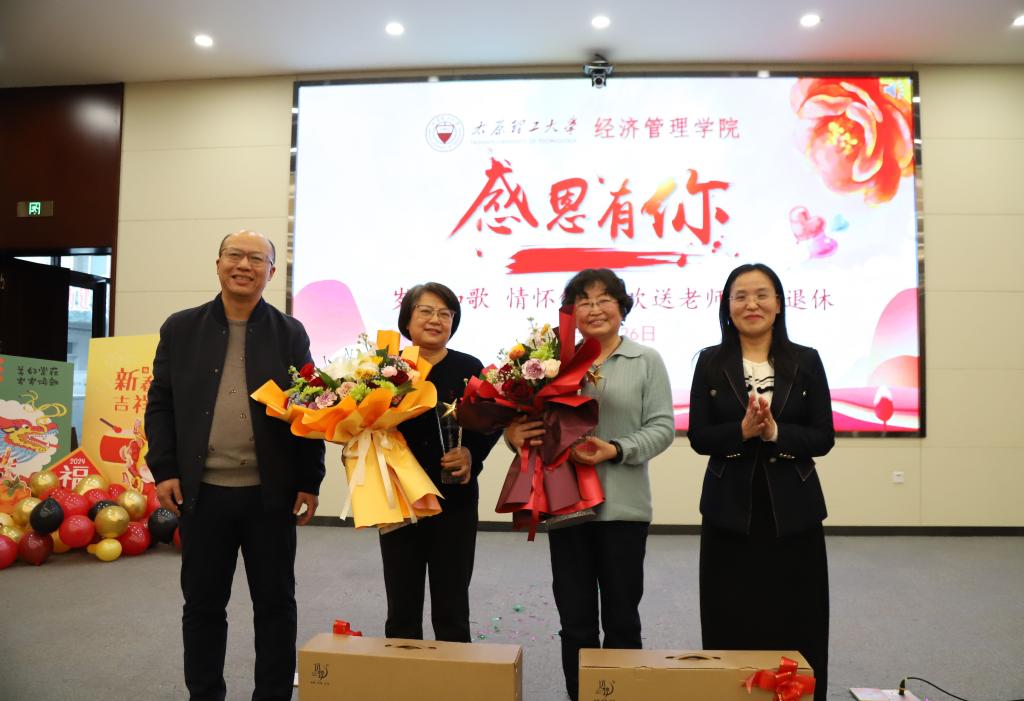 管科系老师带来朗诵《新年,你好》,表达了新年祝福和对美好生活的向往。之后,进行教师荣退休仪式。院党委书记闫新对退休教师李恩平、赵春秀老师表示了由衷的感谢与敬意,两位教师分享了从教多年的心得,勉励年轻教师在教育事业中接力奋斗,做出更大贡献。