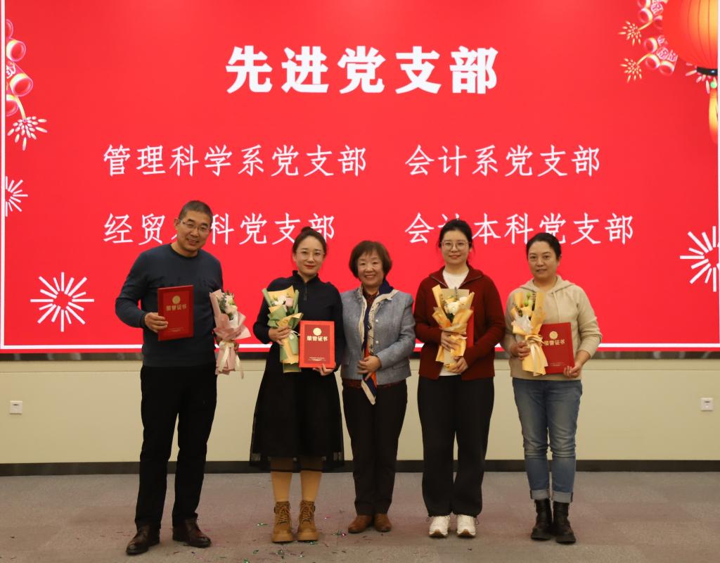 工商系老师带来相声《山西文化》,为茶话会增添欢声笑语,巧妙地展示了山西悠久的文化底蕴。随后,学院对获得优秀共产党员、优秀党务工作者与先进党支部的个人和集体颁发了证书。