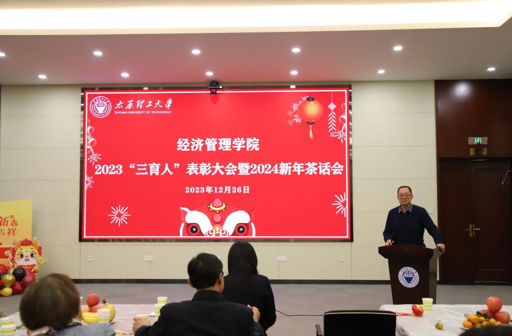 12月26日下午,经济管理学院2023三育人表彰大会暨2024新年茶话会在迎西校区会议中心举行。校党委常委、统战部部长李玮、校工会主席周伟、校工会副主席梁泽莹、院党委书记闫新、院长栗继祖、院党委副书记杨振东、副院长姚西龙、院工会主席戴鸢和学院教职工欢聚一堂,共同见证了一场辞旧迎新的文化盛宴。