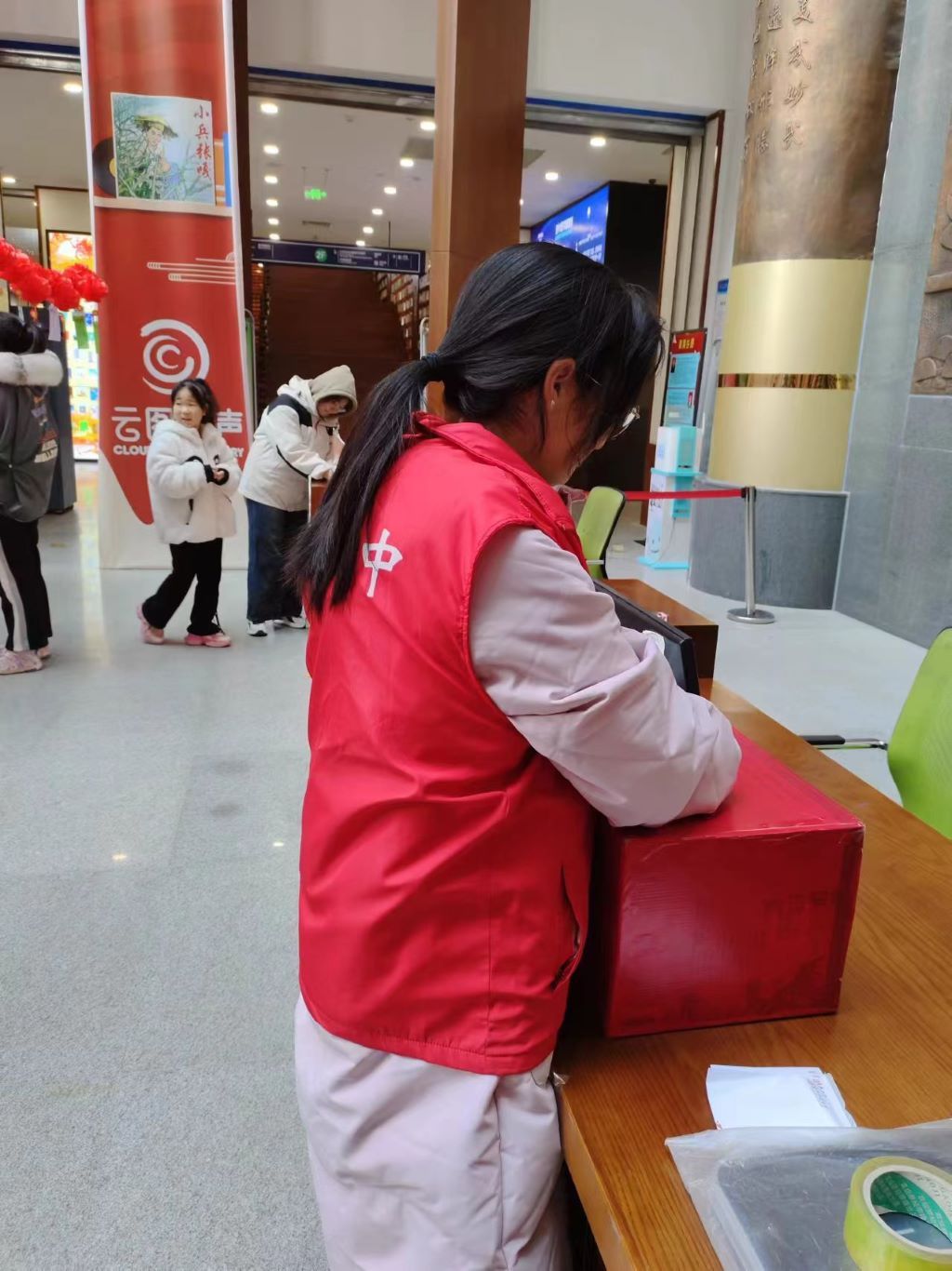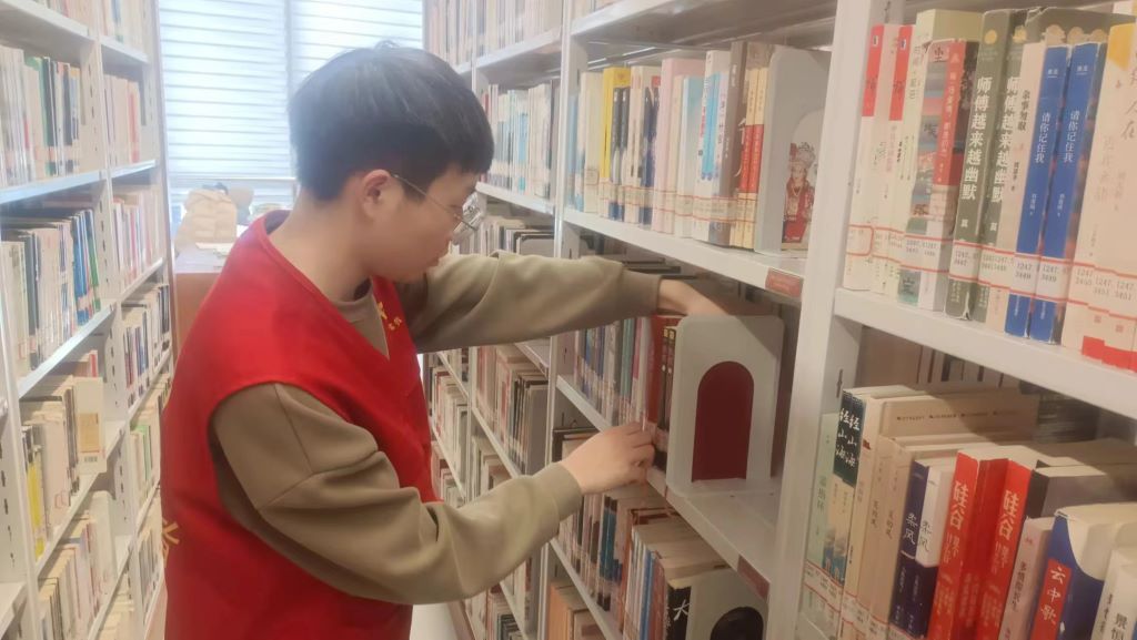 整理图书便读者,维持秩序守文明。志愿者们在馆内流通部、少儿区整理书籍同时,还会维持馆内秩序,引导服务读者,解决读者的问题。