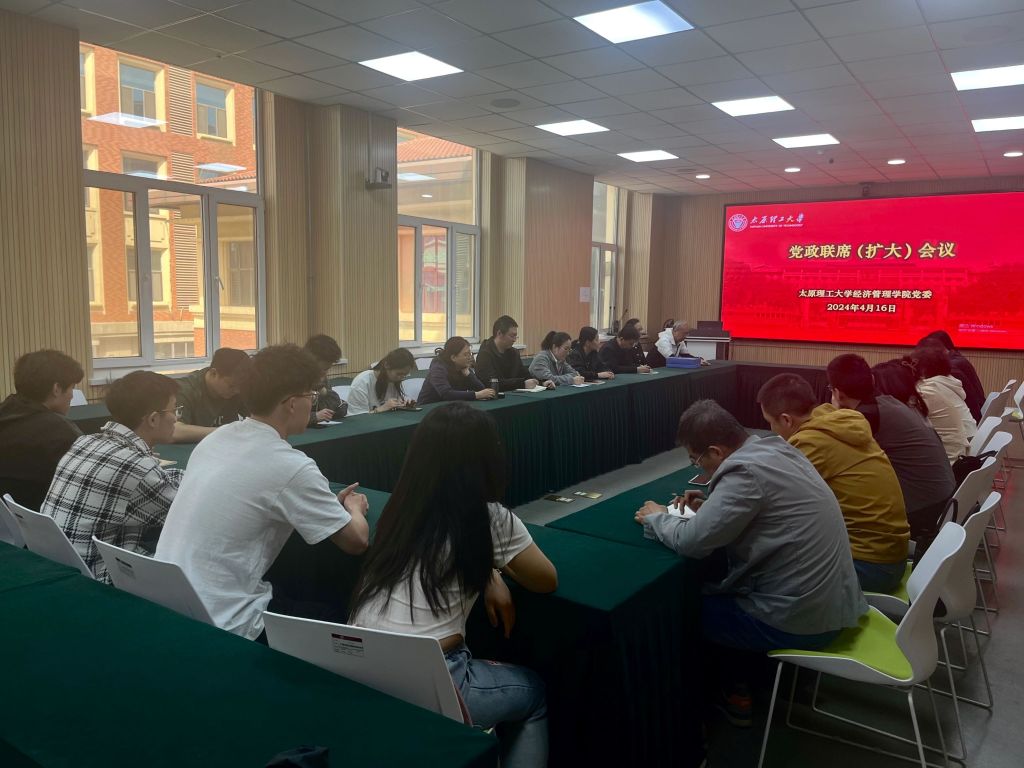 4月16日,经济管理学院在学院229会议室召开党政联席(扩大)会议,传达学习党中央、省委、校党委有关党纪学习教育工作会议文件精神。全体院领导、“三办”主任、系主任、教师代表、学生代表参加会议,会议由院党委书记闫新主持。