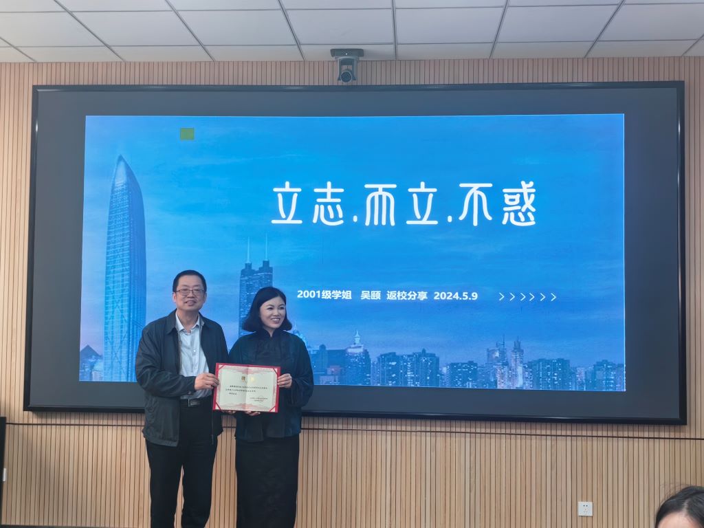 闫新代表学院对吴颐“回家”做分享表示热烈欢迎,她简要介绍了吴颐校友的情况,勉励所有同学们要向吴学姐学习,拓宽就业思路,在自己擅长的领域做大做深做强。栗继祖为吴颐颁发“校友导师”聘书。