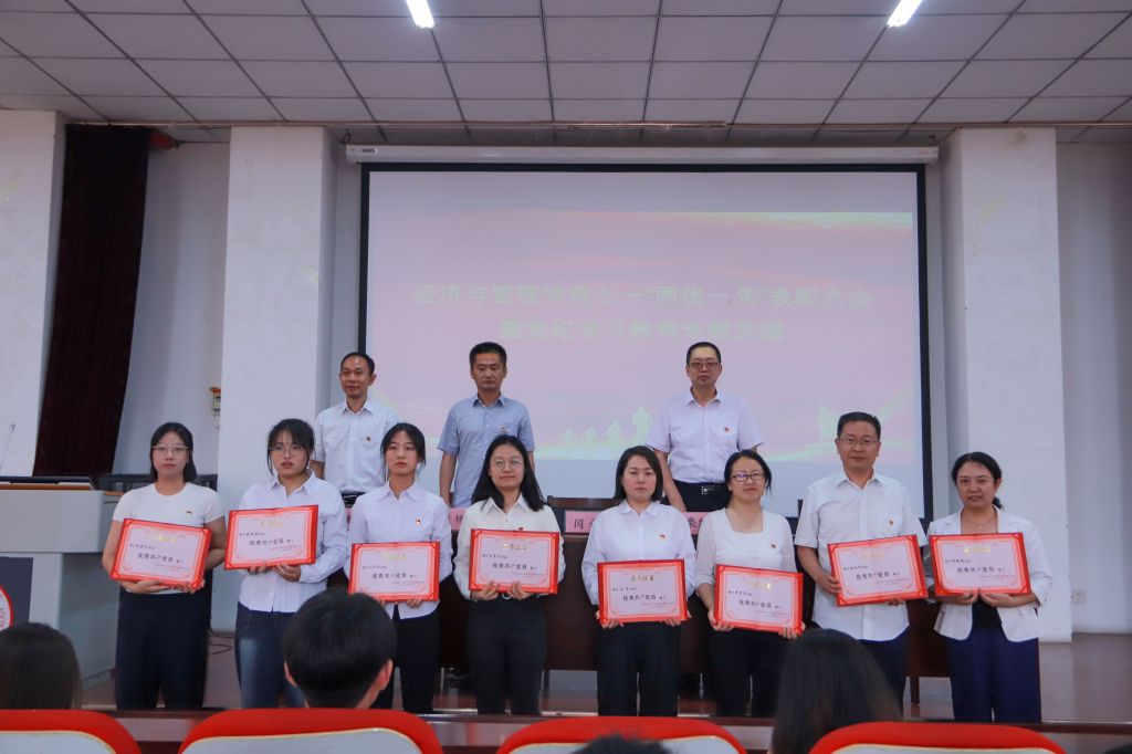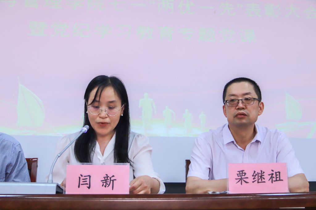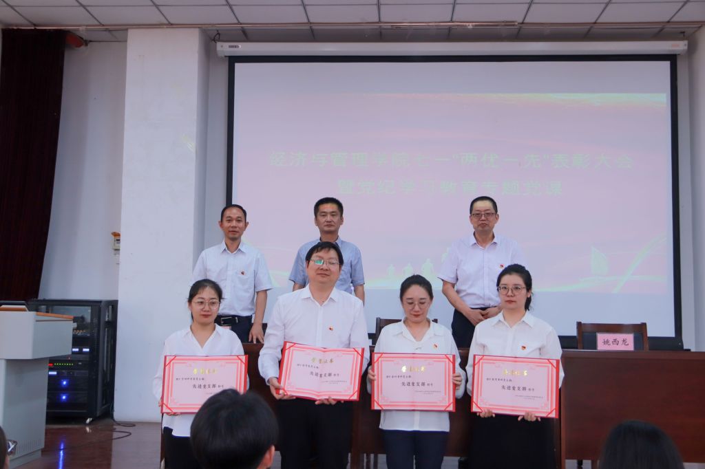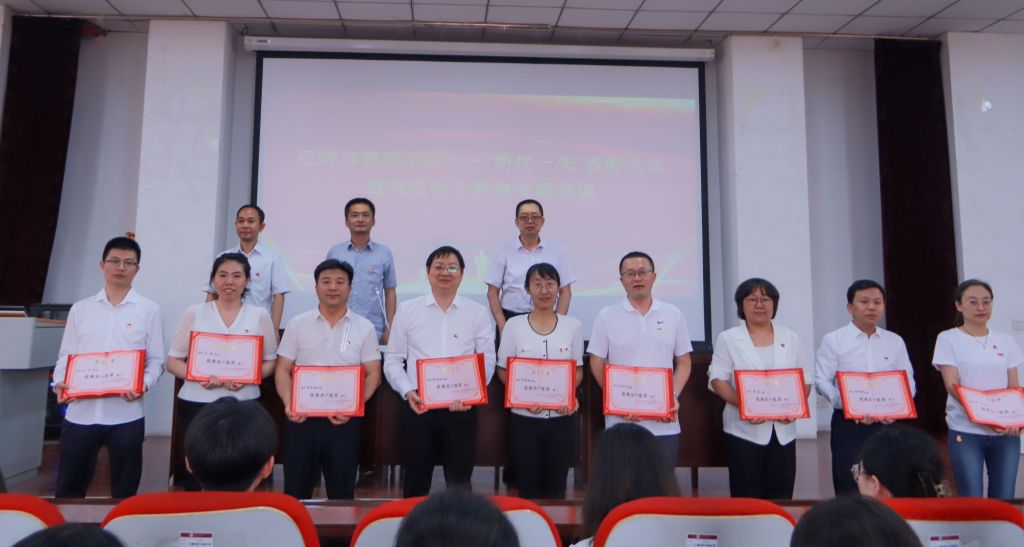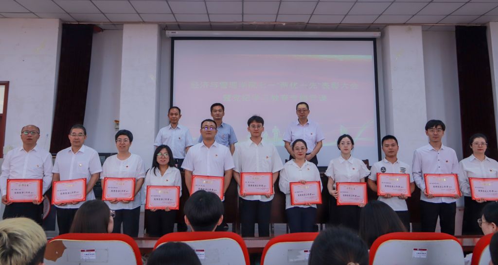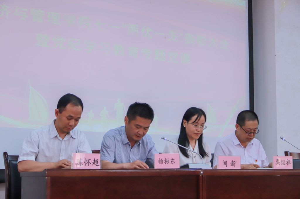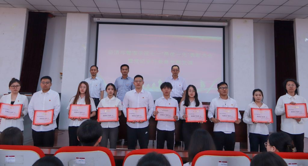 为迎接中国共产党成立103周年,经济管理学院于6月26日下午在学院报告厅隆重举行七一“两优一先”表彰大会暨党纪学习教育专题党课,旨在表彰在党建工作中表现突出的先进个人和集体,激励师生不忘初心、牢记使命,为推动学院高质量发展贡献力量。全体院领导、全体党员、教师代表、学生代表参加。大会由院党委副书记杨振东主持。