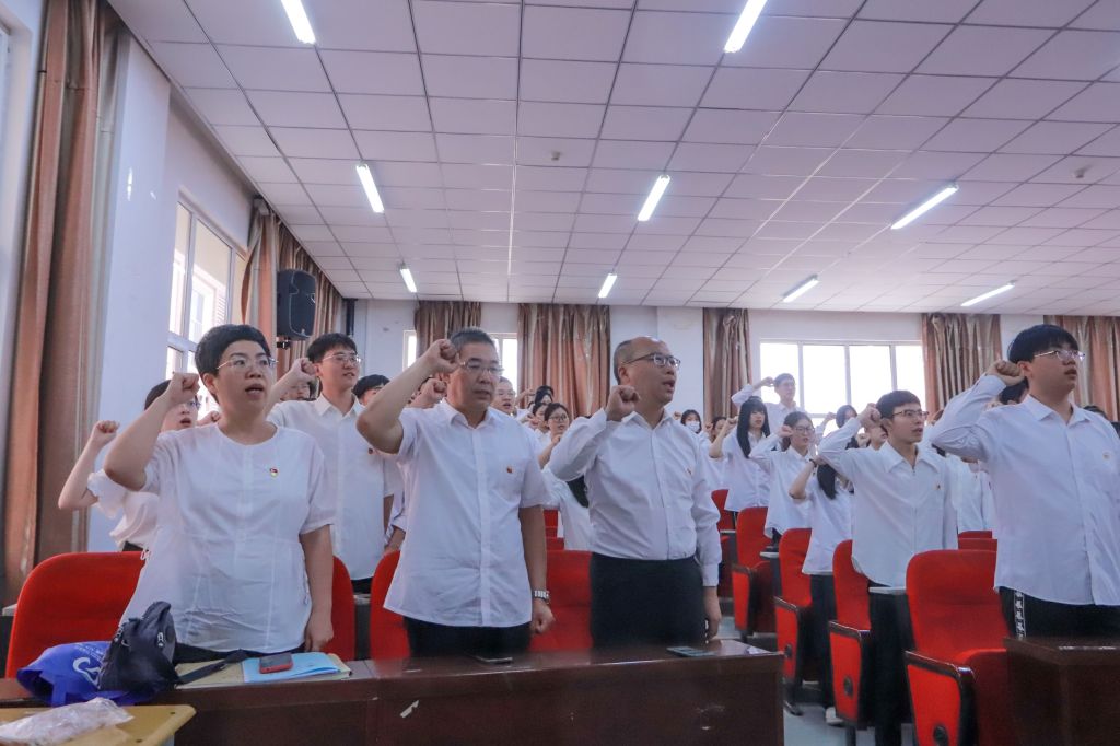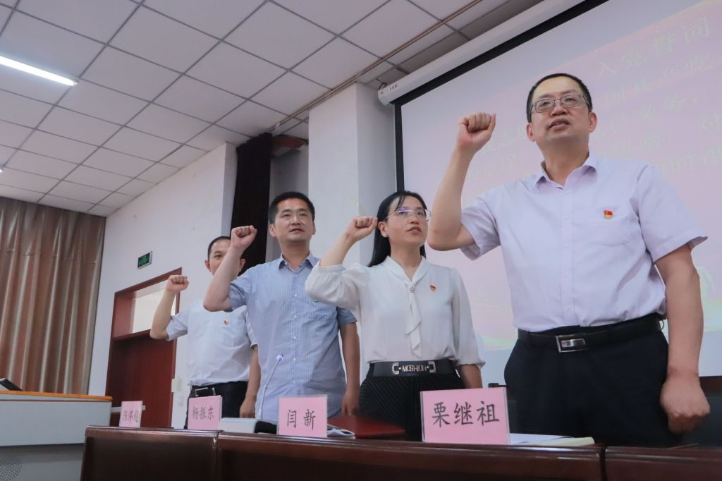 全体党员进行重温入党誓词。