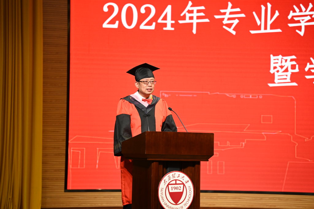 毕业典礼在庄严的国歌声中拉开帷幕。栗继祖代表学院两千余名师生,向圆满完成学业的2024届全体毕业生,表示热烈的祝贺!向为同学们成长成才付出辛勤汗水的全体教职员工,表示衷心的感谢!他寄语走向新征程的同学们三点期望:第一,终身学习,希望同学们拥抱知识的海洋,不断汲取新知、磨砺技能,成为行业的佼佼者,实现自己的人生价值;第二,学以致用,将所学知识应用于实际工作之中,不断创新、不断进步,以实际行动证明知识的力量不仅仅在于积累,更在于运用;第三,心怀感恩,希望同学们怀着感恩的心回馈社会,铭记师长的教诲和同窗的友情,勇敢地迈向未来,成为温暖世界的人。毕业绝不仅仅是简单的道别,更是走向广阔天地的起点。希望全体毕业生能够用更加坚定的勇气与信心创造更美好的未来。