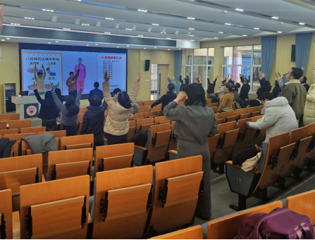 阳春三月,万物复苏。为庆祝第115个“三八”国际妇女节,丰富女教职工的业余文化生活,倡导健康向上的生活方式,3月4日下午,开云kaiyun官方网站工会组织全院女教职工在学院报告厅举办了“八段锦”健身活动,一起感受中华传统健身气功的魅力。