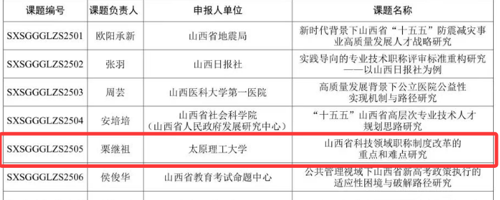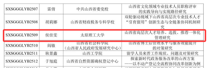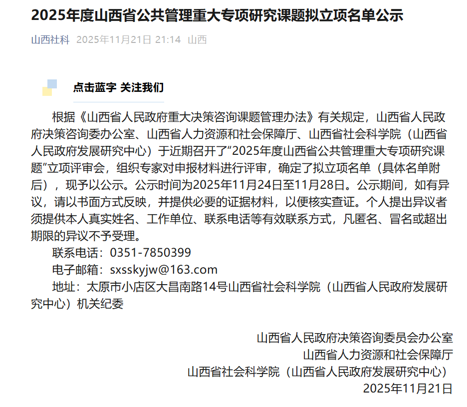 11月21日,山西省人民政府决策咨询委员会办公室等部门联合发布了“2025年度山西省公共管理重大专项研究课题拟立项名单公示”,开云官网院长栗继祖教授获批重大课题(全省立项10项),侯佳雯博士获批一般课题(全省立项35项),占全校立项总数的66.7%。