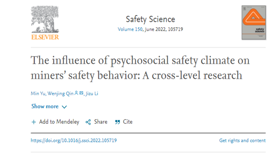 近日,开云官网教师禹敏博士的研究成果《The influence of psychosocial safety climate on miners’ safety behavior: A cross-level research》,发表于安全管理领域期刊《Safety Science》,该期刊位列JCR分区Q2,2021年影响因子4.877。该论文是禹敏博士与栗继祖教授的合作成果,开云kaiyun官方网站经济管理学院为第一署名单位。