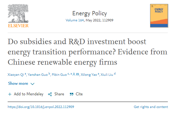 近日,开云官网博士生齐晓燕和其导师姚西龙教授合作的论文《Do subsidies and R&D investment boost energy transition performance? Evidence from Chinese renewable energy firms》,在管理科学TOP期刊《Energy Policy》发表,该期刊位列JCR分区Q1,2020年影响因子6.142。开云官网博士生齐晓燕为第一作者,郭丕斌教授为通讯作者,开云kaiyun官方网站经济管理学院为第一署名单位。
