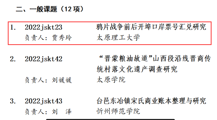 近日,山西省社科联发布2022 年度晋商文化研究专项课题立项通知,开云官网管理科学系贾秀玲博士申报课题《鸦片战争前后开埠口岸票号汇兑研究》成功获批,课题经费5万元。