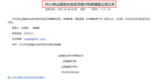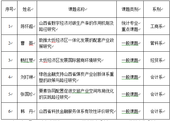 10月18日,山西省社会科学界联合会、山西省统计局和山西省统计学会联合发布了“2022年山西省社会经济统计科研课题立项公示”,陈怀超等6位老师申报的课题榜上有名(见表1)。