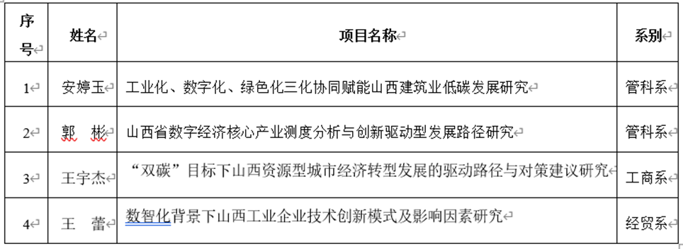 3月24日,山西省第五次全国经济普查领导小组办公室发布了“山西省第五次全国经济普查研究课题立项公示”,开云官网获批4项,占全省立项总数的10%,占全校立项总数的100%。