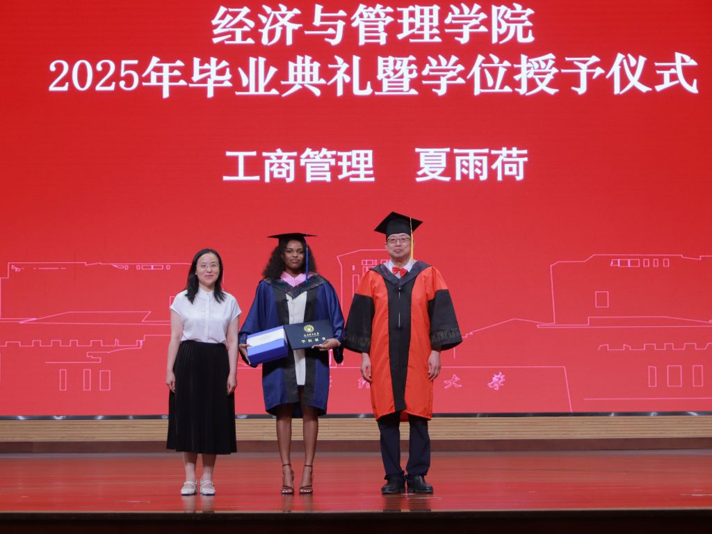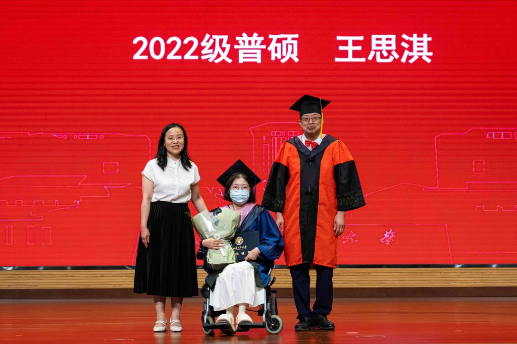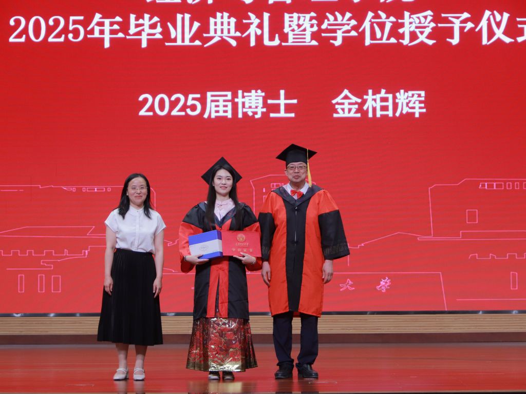 毕业典礼在悠悠校歌声中缓缓落幕。在随后的学位授予仪式中,毕业生们依次登台,栗继祖为毕业生拨穗正冠、颁发学位证书,闫新为毕业生送上毕业纪念品。