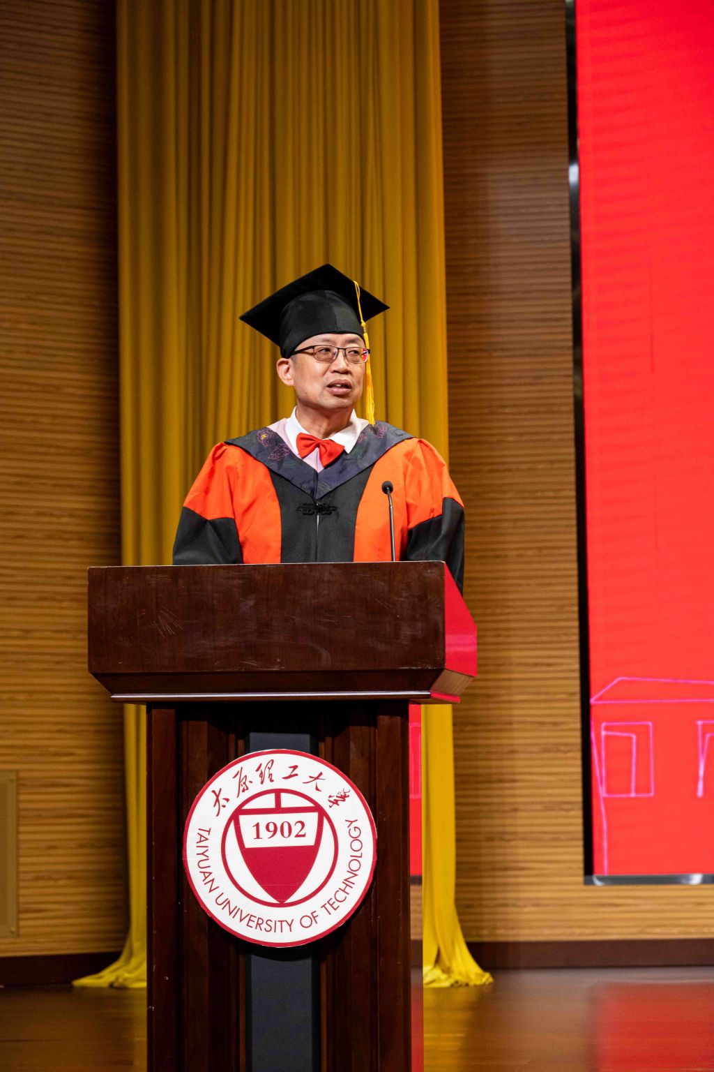 毕业典礼在激昂的中华人民共和国国歌声中拉开帷幕。栗继祖致辞代表全院2000余名师生向圆满完成学业的2025届全体毕业生,表示热烈的祝贺,向为同学们成长成才付出辛勤汗水的全体教职员工,表示衷心的感谢!他表示“愿你们常怀感恩之心,铭记师长的教诲与同窗的情谊,带着‘自强不息、追求卓越’的太理精神,在各自的人生赛道上勇往直前。我们期待着,未来能听见你们在不同领域传来的好消息!”