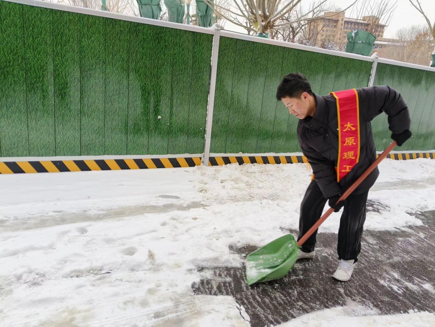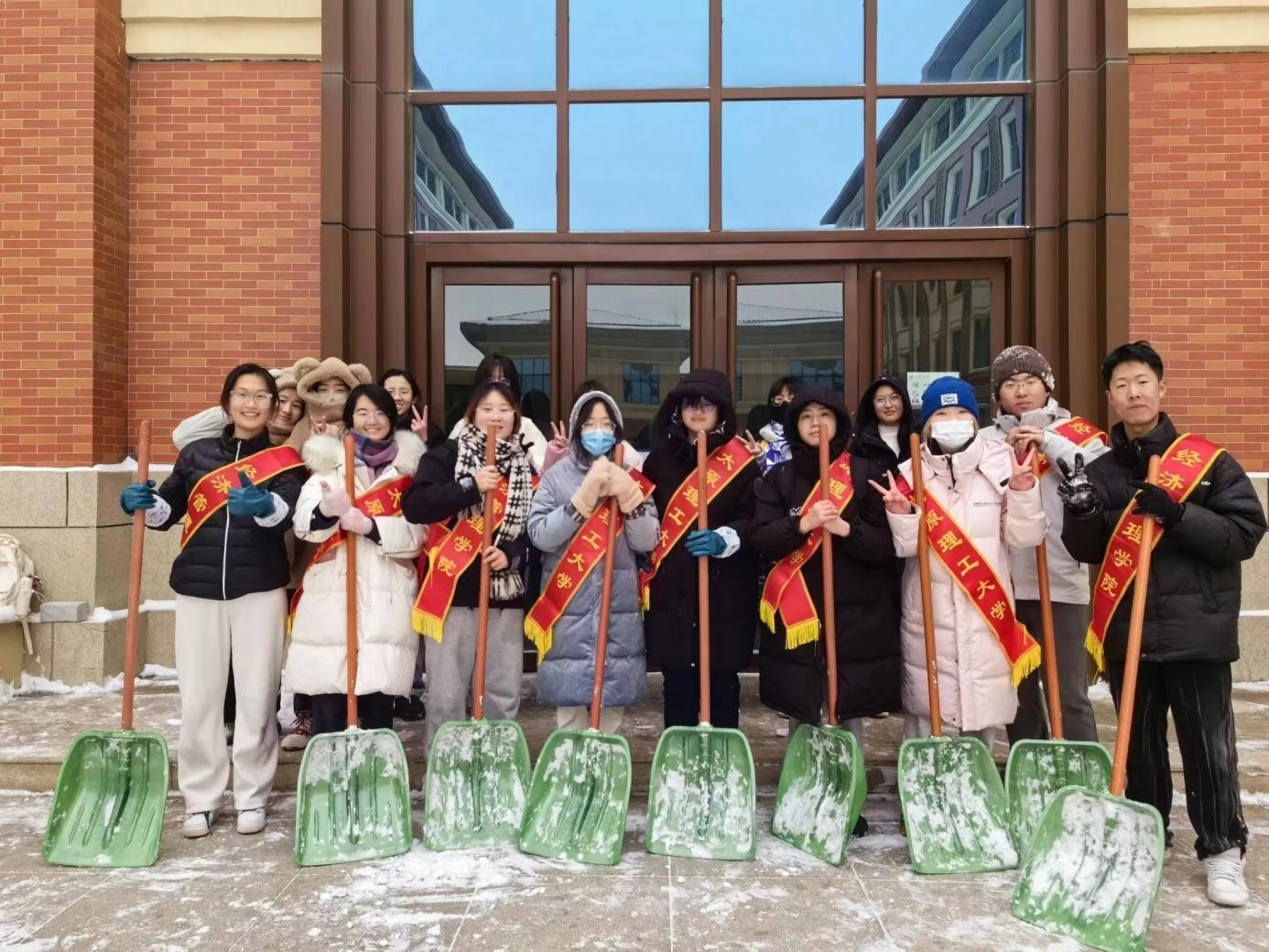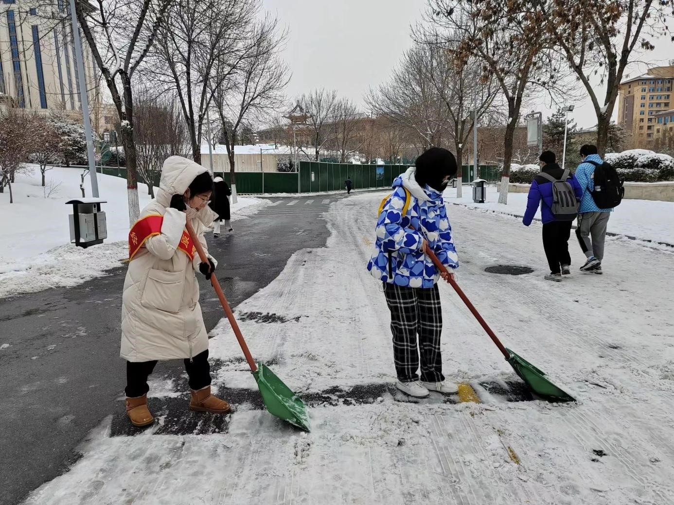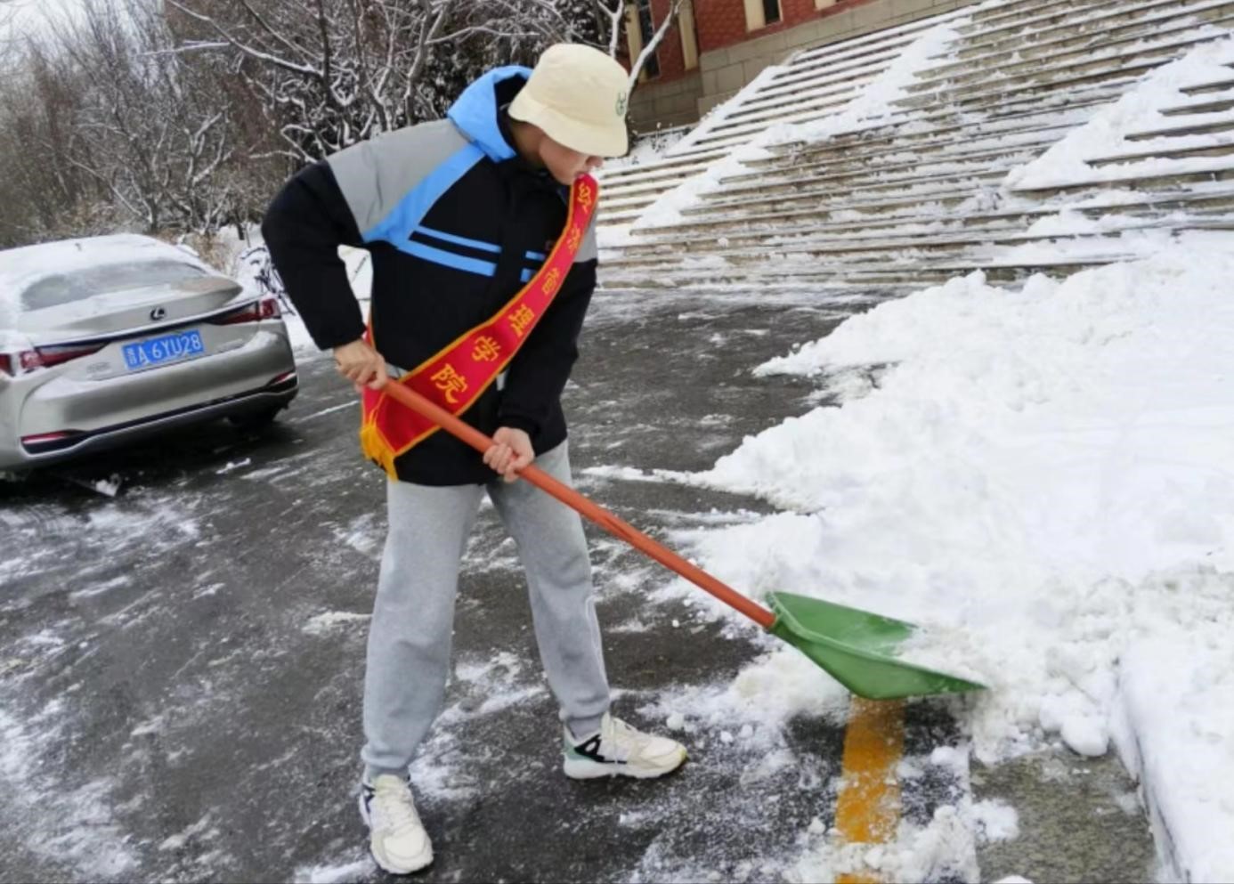 同学们拿起铁锹,齐心协力清扫道路上的积雪。虽然天气寒冷,但扫雪过程中,同学们分工协作,热情高涨,干劲十足。