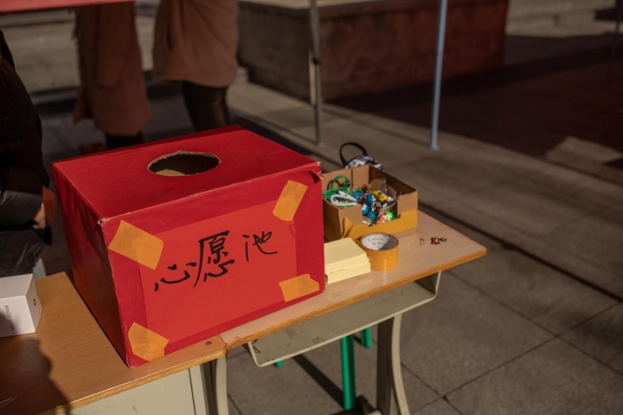 园游会分为游戏和化妆体验两部分,游戏部分包括“心愿池”、练歌房和传统活动“投壶”三种,同学们竞相展开体验感受美好春日时光,或是一展歌喉,或是将新年新愿望写在便签纸上寄给未来的自己,或是箭无虚发赢来阵阵欢呼,现场氛围如火如荼。
