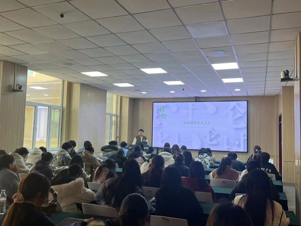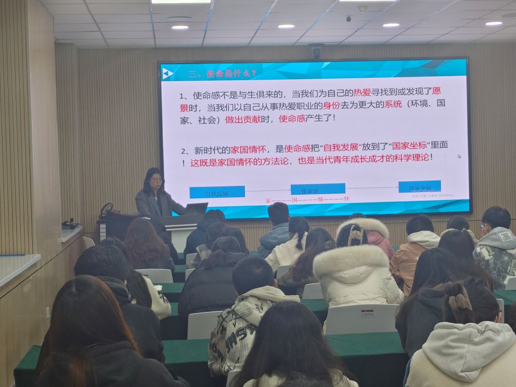第二讲由郝晓飞老师做了主题为“青年使命”的报告,给大家分享了自己的入党经历,并通过讲述习近平总书记在2014年提到对青年人的四项要求--“勤学、修德、明辨、笃实”,鼓励同学们提前规划自己的理想与方向,通过SMART原则建立自己奋斗目标,用自己的职业身份为国家做贡献。