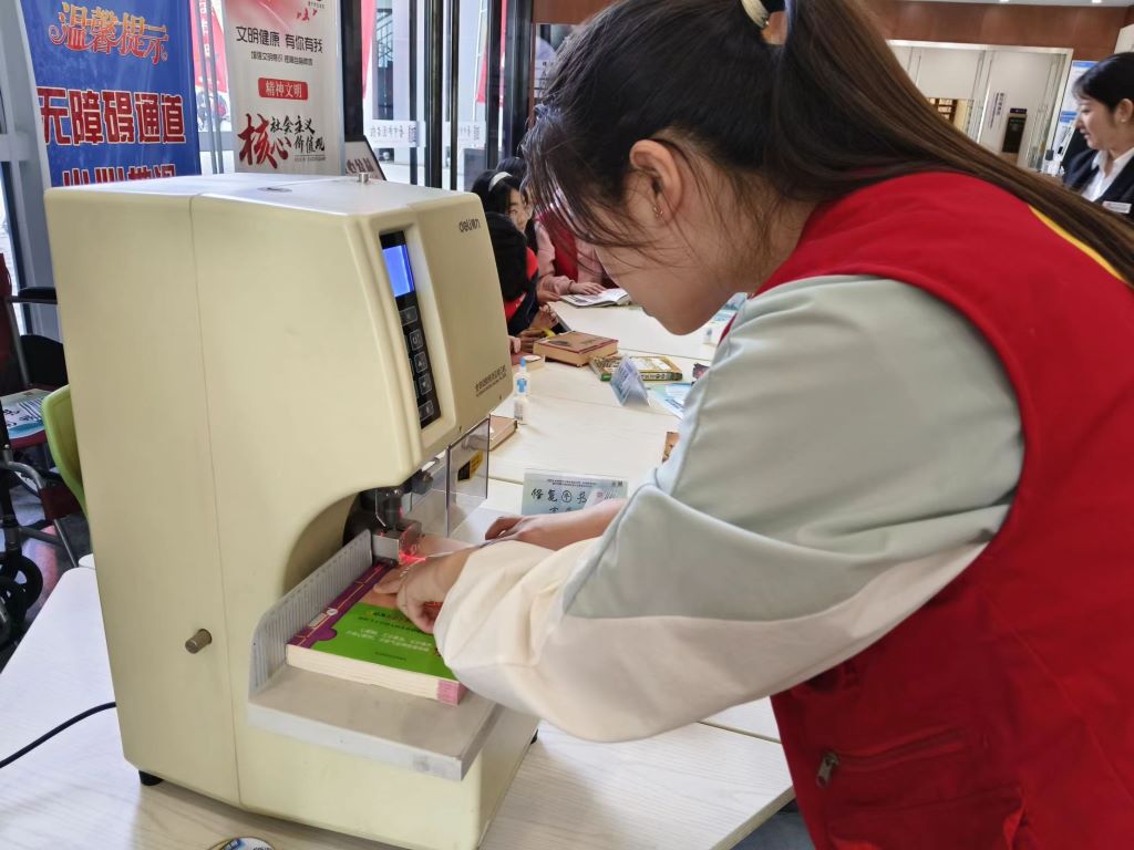 从讲解中,志愿者们学习到了正确地清理、修补页面、加固书脊、重新装订等专业技巧。之后,志愿者们便开始着手对损坏程度不同的图书进行逐一修复。在图书修复过程中,志愿者们相互配合,用乳白胶,胶带等工具来修补书皮损坏严重的书籍,对于掉页缺页的书籍,找出掉页缺页的部分,将这些书进行整理,并用专门的打孔装订一体机进行装订。志愿者们也单独体验了装订机的使用,了解其工作原理,操作技巧和注意事项,将受损的图书“旧貌换新颜”。